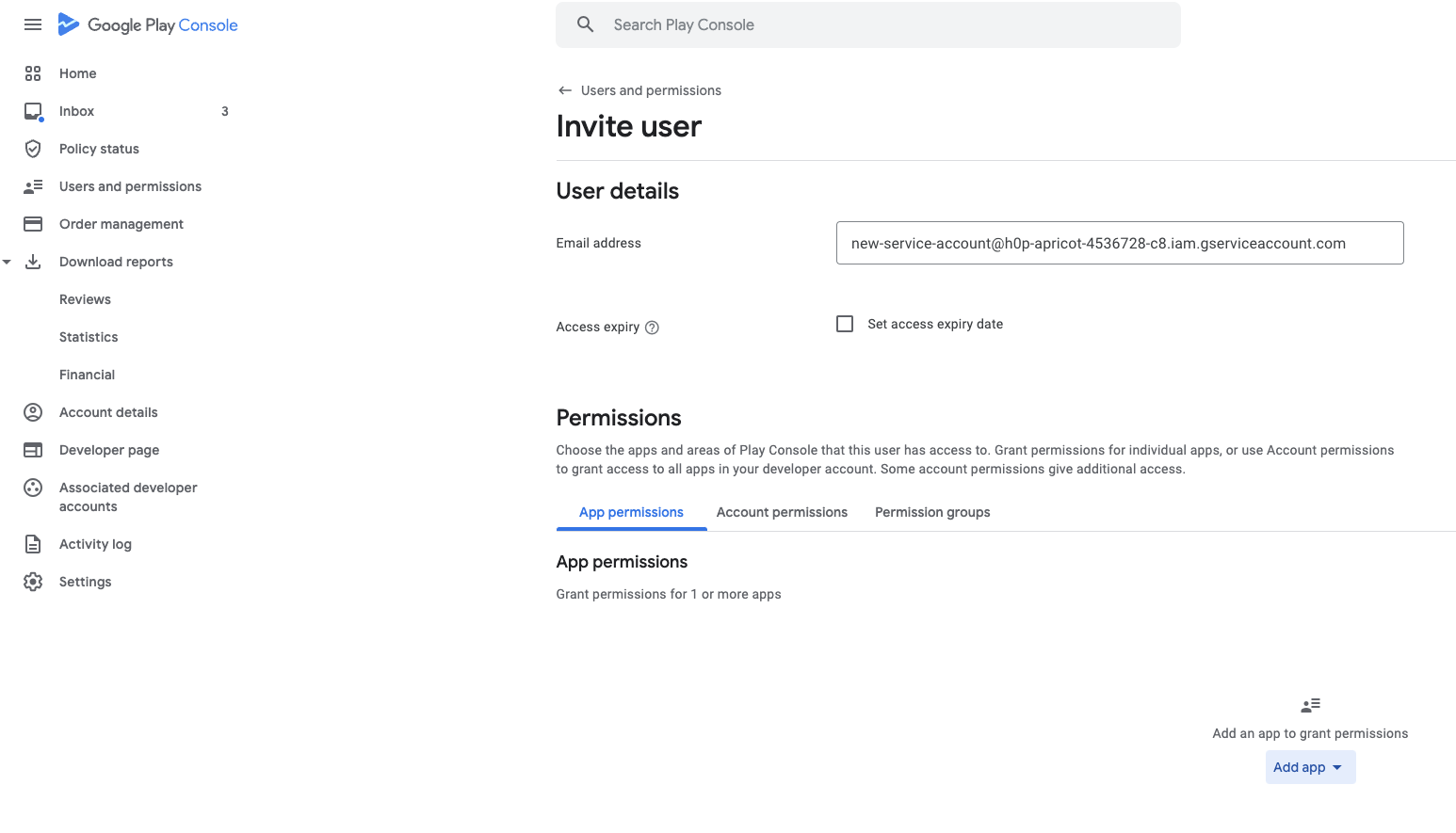 Перейдите на страницу Users and permissions в консоли Google Play.
